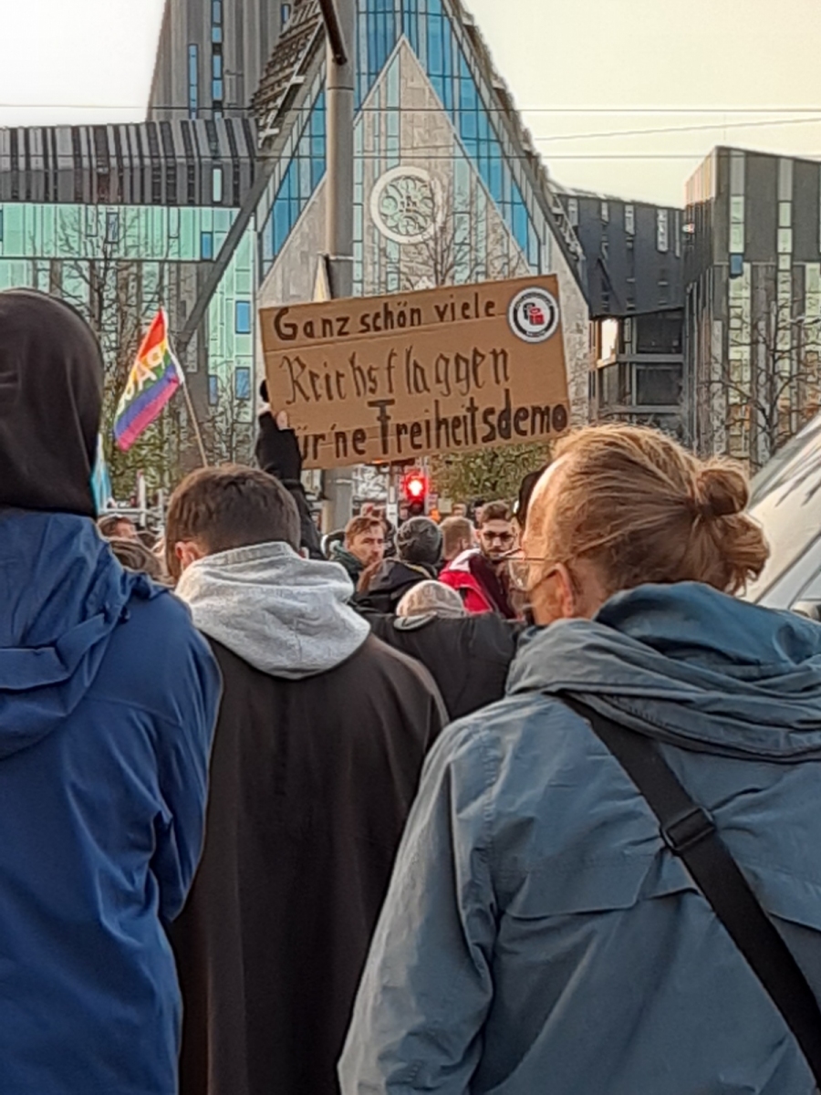 Dass die neuen Lockdownmaßnahmen nicht jedem schmecken und dass auch das Recht das zu äußern absolut berechtigt ist, keine Frage, doch verhältnismäßig und angemessen ist das Geschehen am Samstag in der Leipziger Innenstadt mitnichten. Dass sich Restaurantbesitzer und Inhaber all jener Läden, die im Lockdown nicht offen haben dürfen, veralbert vorkommen mussten, ist naheliegend. Dass auch nach der Auflösung der Querdenken-Veranstaltung keine Bewegung in die Masse kommt und das Eingreifen von Polizei ausbleibt, lässt auch einen dumpfen Geschmack übrig. Dass es dennoch möglich war, entgegen aller Auflagen, feiernd und marodierend über den Innenstadtring zu ziehen, lässt mich keine Worte mehr finden… Dass was mich bei allem unglaublich nachdenklich stimmt: wie kann man es vertreten, mit eindeutig rechtem und verfassungsfeindlichem Gedankengut, mit braunen Parolen und Plakaten auf einer Seite zu stehen…?